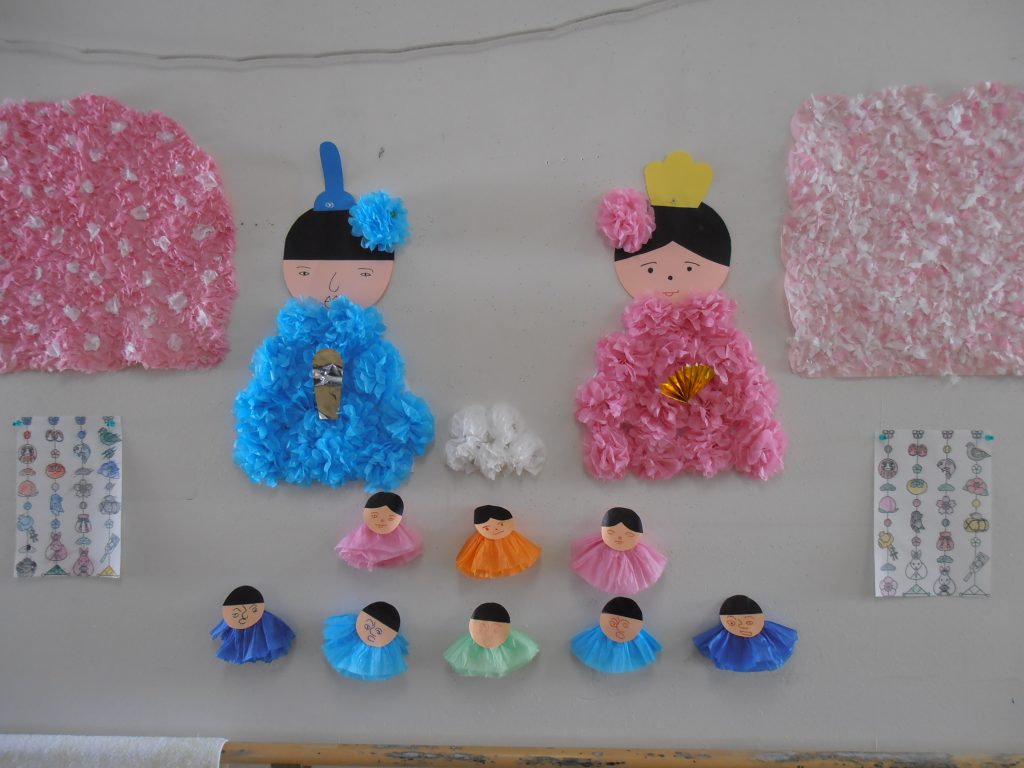 利用者のみなさんにお顔を描いてもらったお雛様たちも